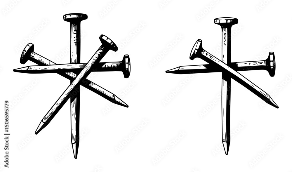 Tableau sur toile three crucifixion nails – hand drawn christian easter vector