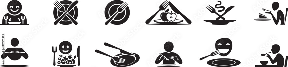 Tableau sur toile Diverse eating habits icons set black and white. eps-10