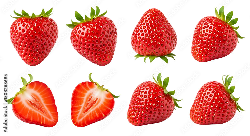 Tableau sur toile Collection of Fresh Red Strawberries Isolated on Black Background