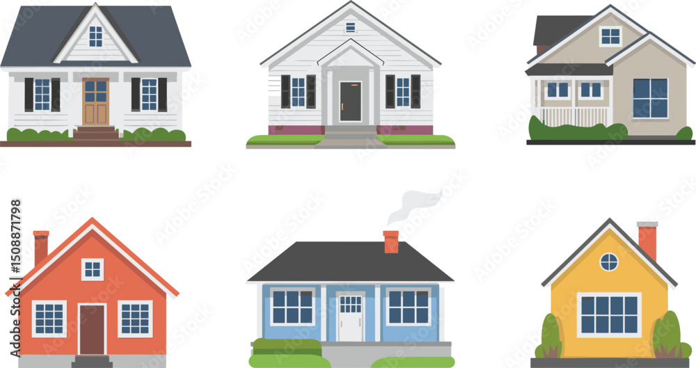 Tableau sur toile Colorful and diverse suburban house illustrations with modern and classic design