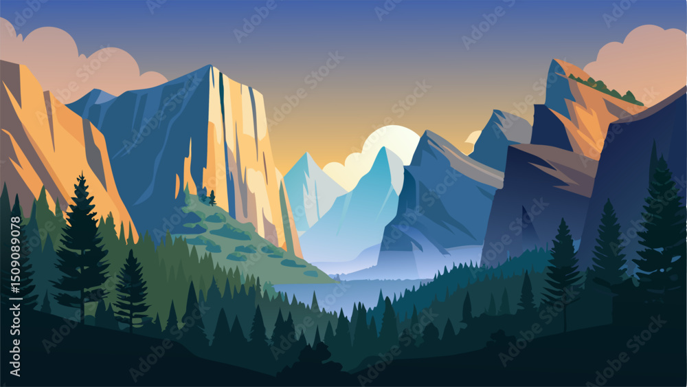 Tableau sur toile Sunrise over Yosemite Valley: Majestic Mountain Landscape