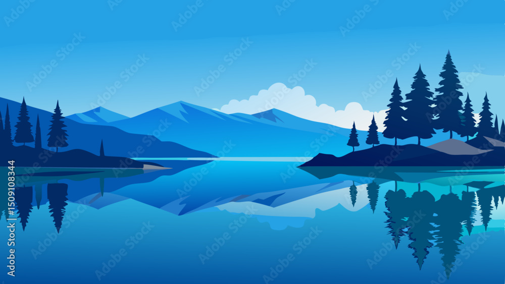 Tableau sur toile Lake Tahoe Vector Illustration with Pines and Water Reflection