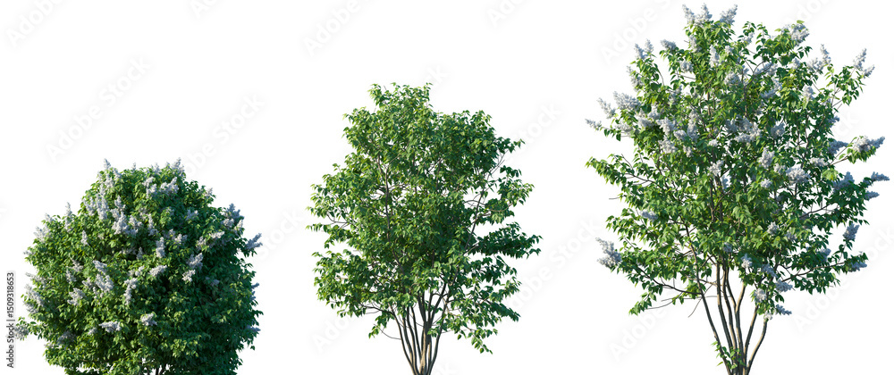 Tableau sur toile Set of Syringa vulgaris (the lilac or common lilac) frontal street png in sunny