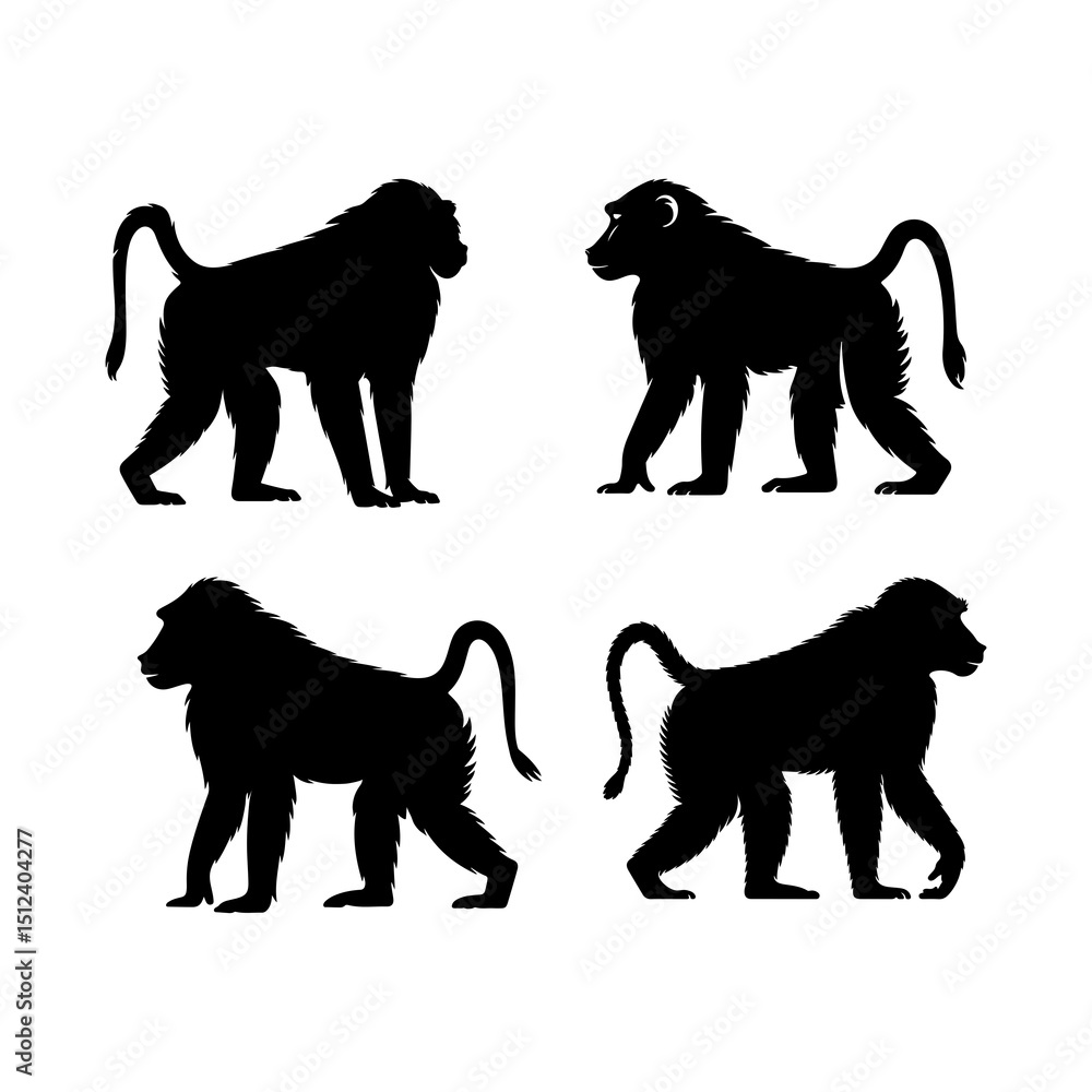 Tableau sur toile Silhouette depiction of four baboons in various poses against a white background