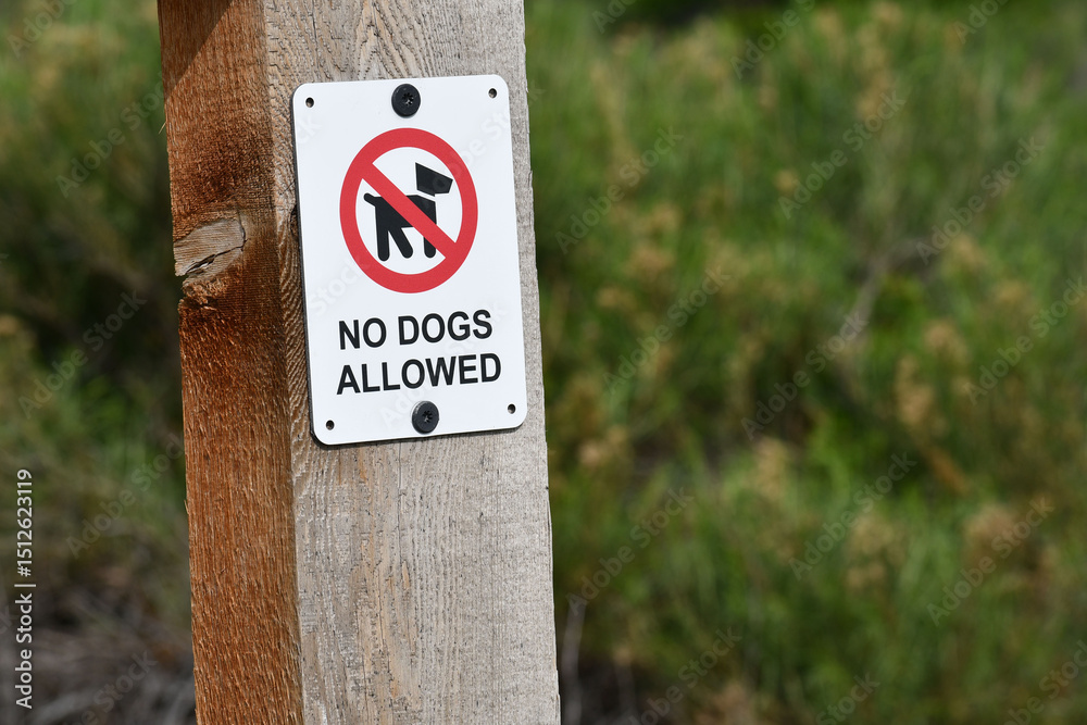 Tableau sur toile No dogs allowed sign on wooden fence post.