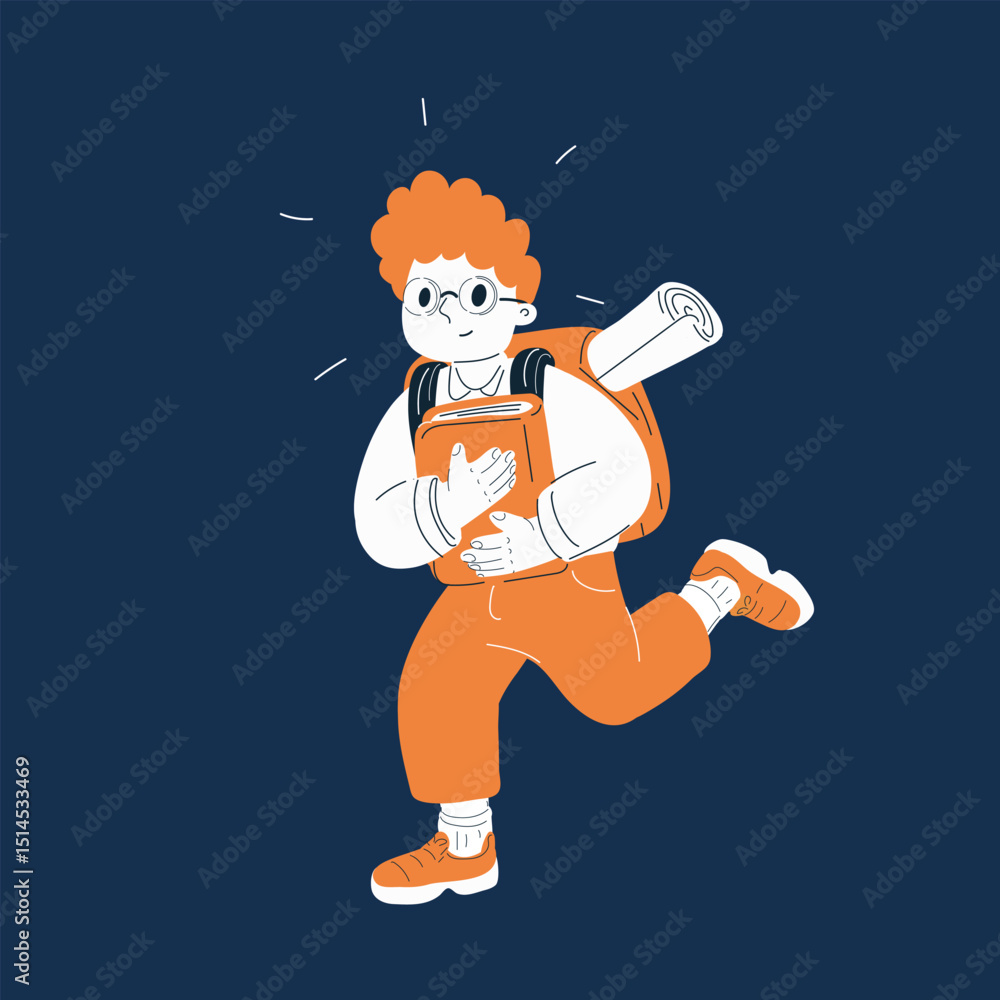 Tableau sur toile Cartoon vector illustration of an excited schoolboy running with a book, symboli