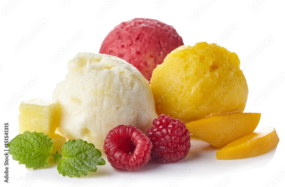 Tableau sur toile Pineapple, raspberry and mango sorbet