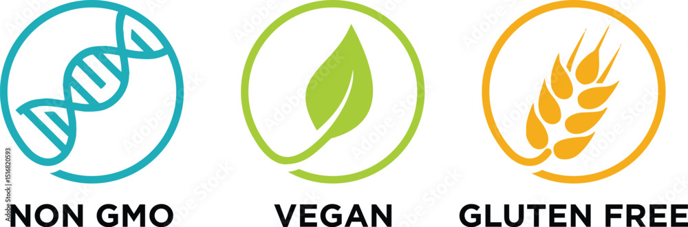 Tableau sur toile Non GMO, Vegan, Gluten Free Icons | Healthy Food Product Labels