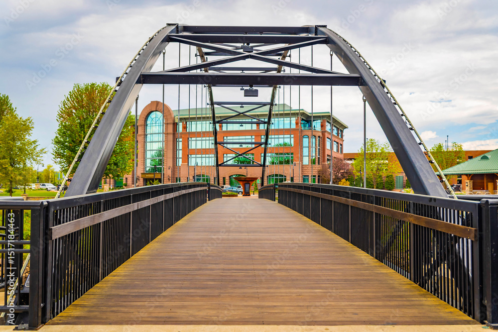 Tableau sur toile Phoenix Park Footbridge over Chippewa River in Eau Claire