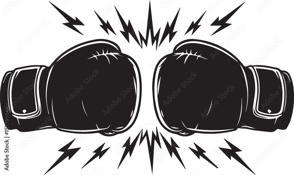 Tableau sur toile Boxing Gloves Clash Vector Illustration - Silhouette Clipart for Sports Graphics