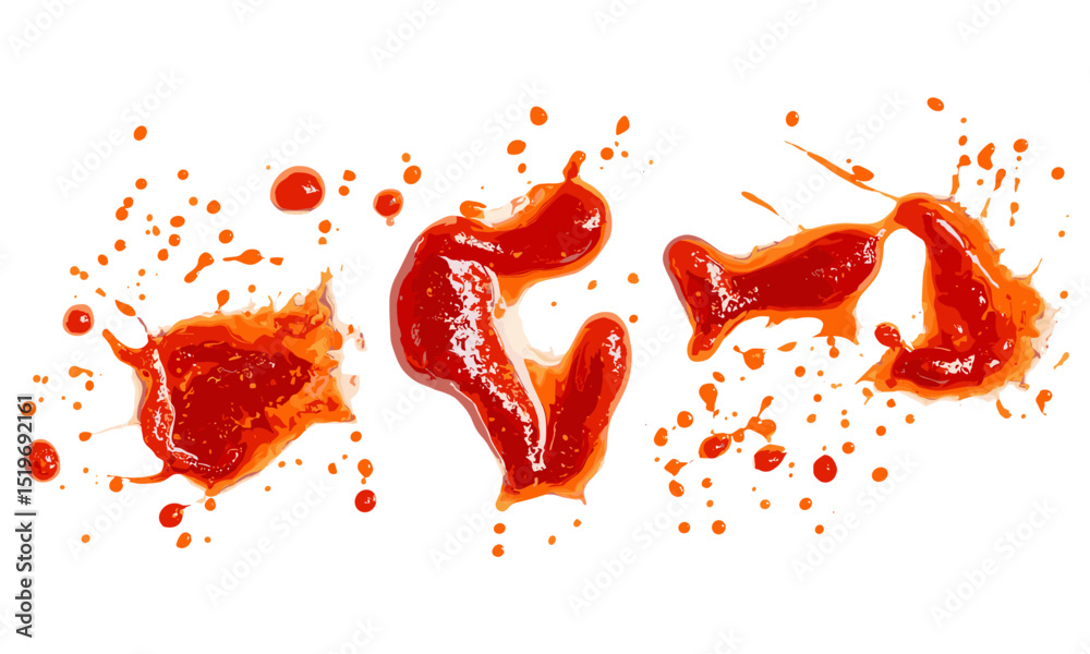 Tableau sur toile Top view of red ketchup splashes isolated on white background, tomato puree texture, vector illustration, food art, fresh sauce splash, vibrant tomato ketchup, splash design