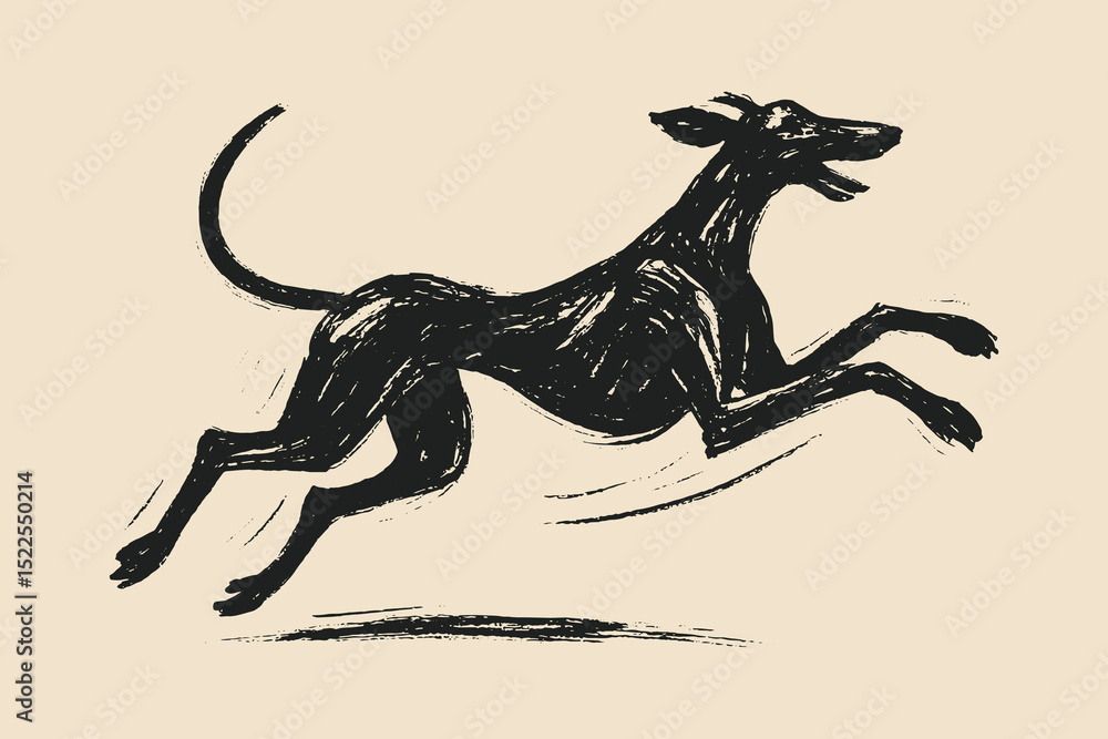 Tableau sur toile Greyhound running naive sketch black on white vector illustration