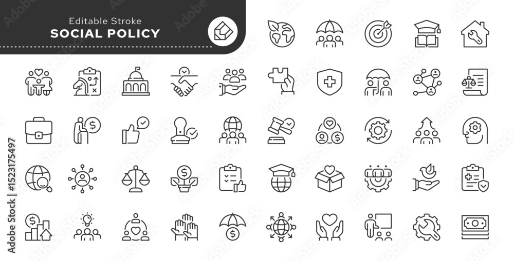 Tableau sur toile Social policy line icon set