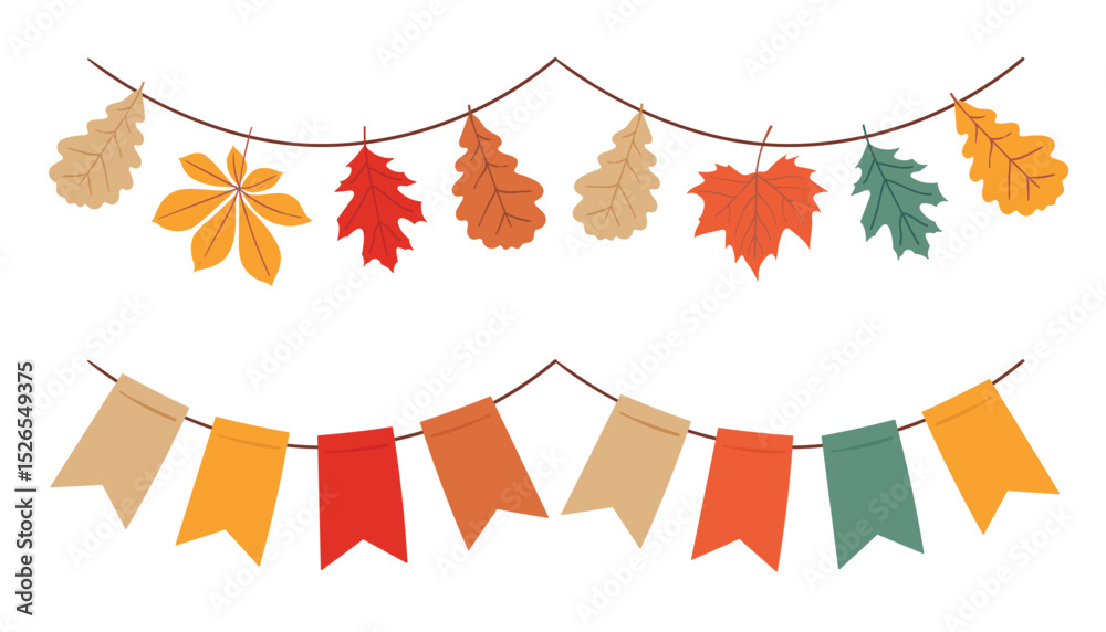 Tableau sur toile Autumn colorful vector garland with colorful leaves and small flags in fall colo