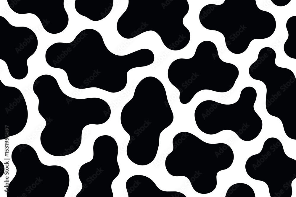 Tableau sur toile Seamless cow skin pattern with large black spots on white background