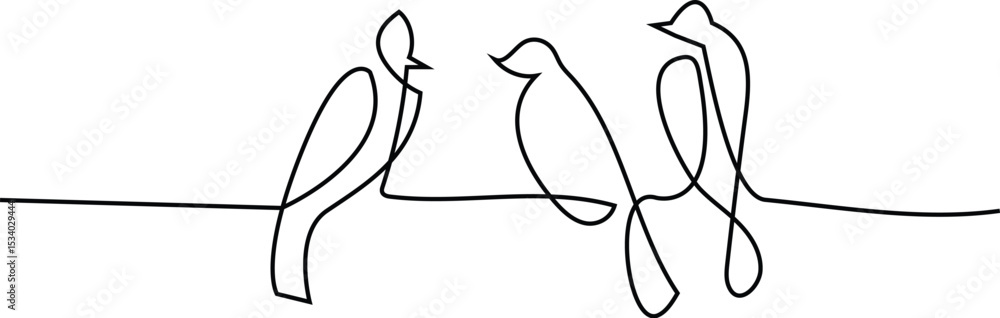 Tableau sur toile single line drawing doodle of birds perched closely on a branch, illustration o