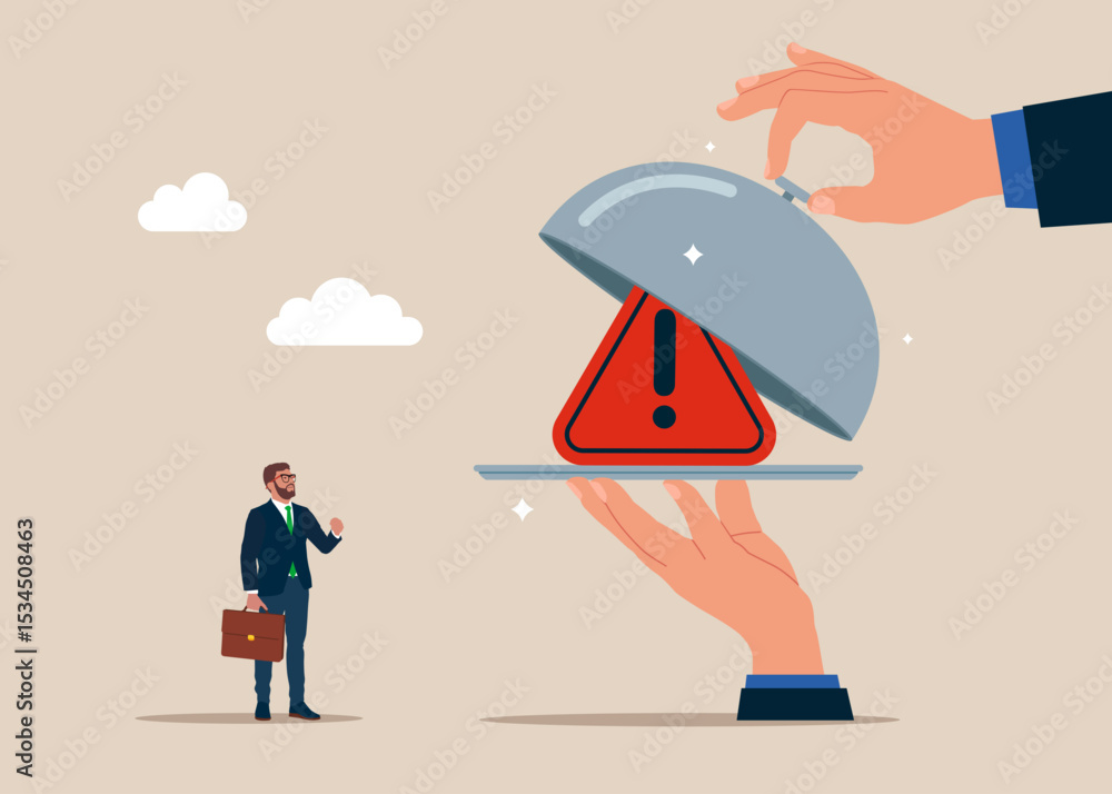 Tableau sur toile Open silver cloche to see exclamation attention sign