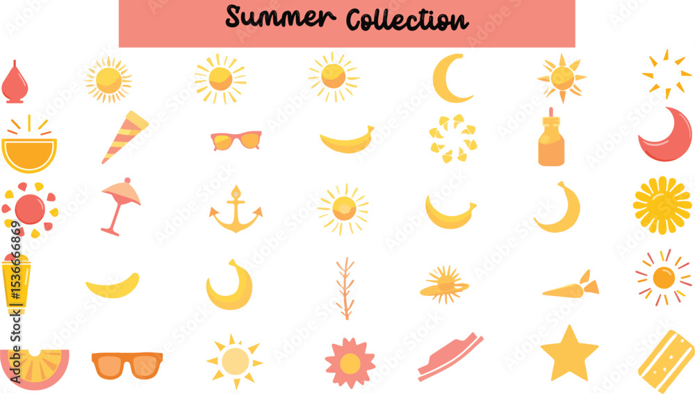 Tableau sur toile Tropical summer beach elements. summer symbol bundle svg