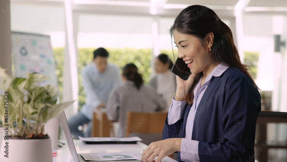 Tableau sur toile Real estate agent female asia people go green net zero waste control ESG audit office desk