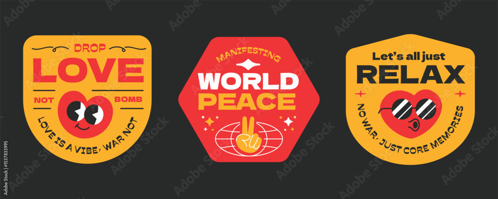 Tableau sur toile Groovy badges, stickers, patchs collection