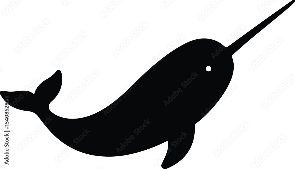 Tableau sur toile Silhouette Narwhal with horn swimming marine animal vector illustration