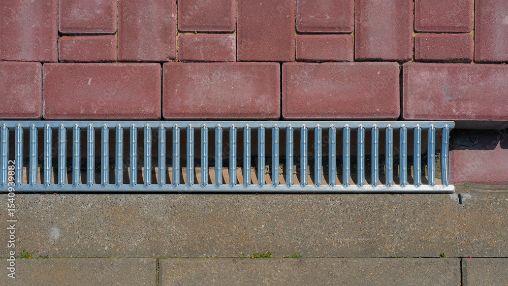 Tableau sur toile Top view of modern drainage grate and textured pavement in urban infrastructure design