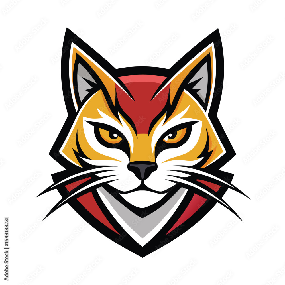 Tableau sur toile A colorful wildcat animal mascot head gazes intensely forward with bright yellow