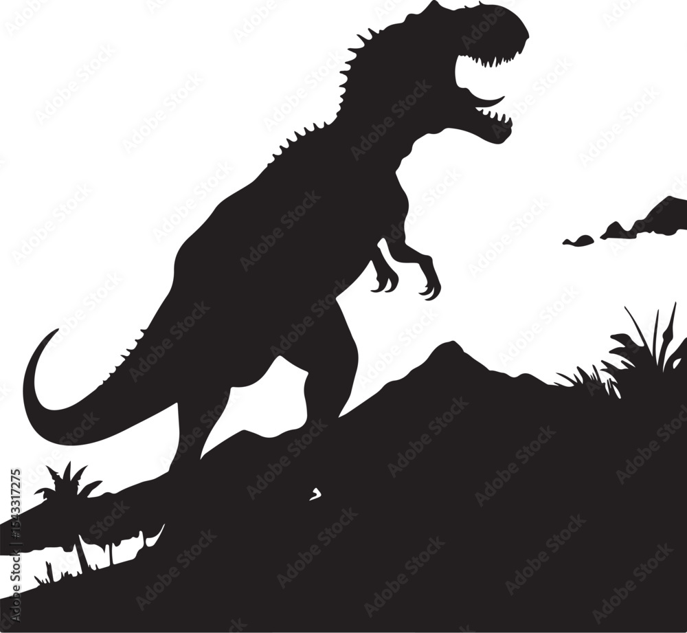 Tableau sur toile Silhouette of a tyrannosaurus rex in a prehistoric landscape