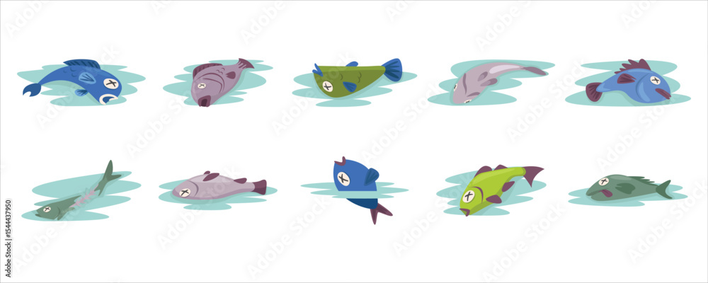 Tableau sur toile Collection of Dead Fish, dead fish lying on water surface