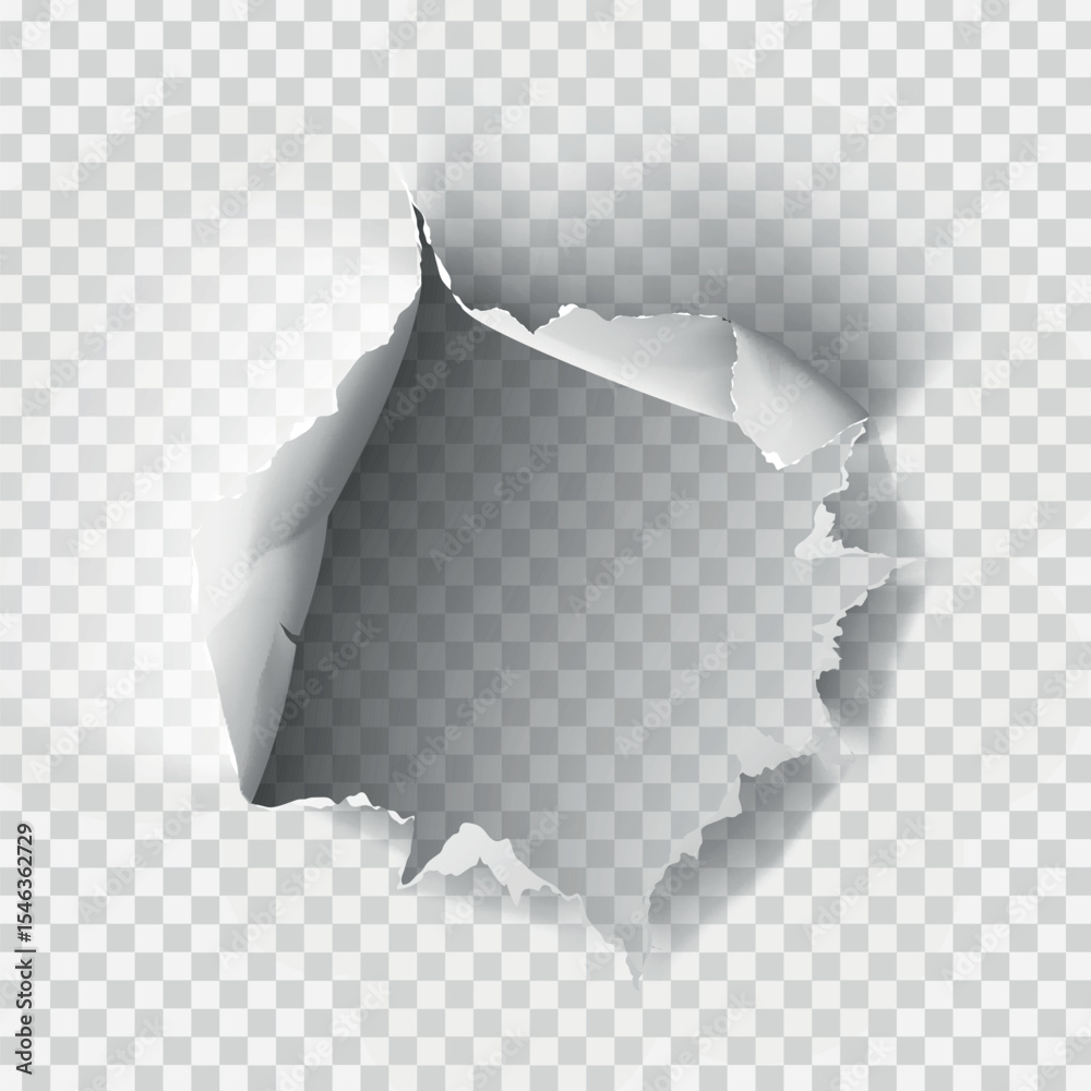 Tableau sur toile ragged Hole torn in ripped paper on transparent background