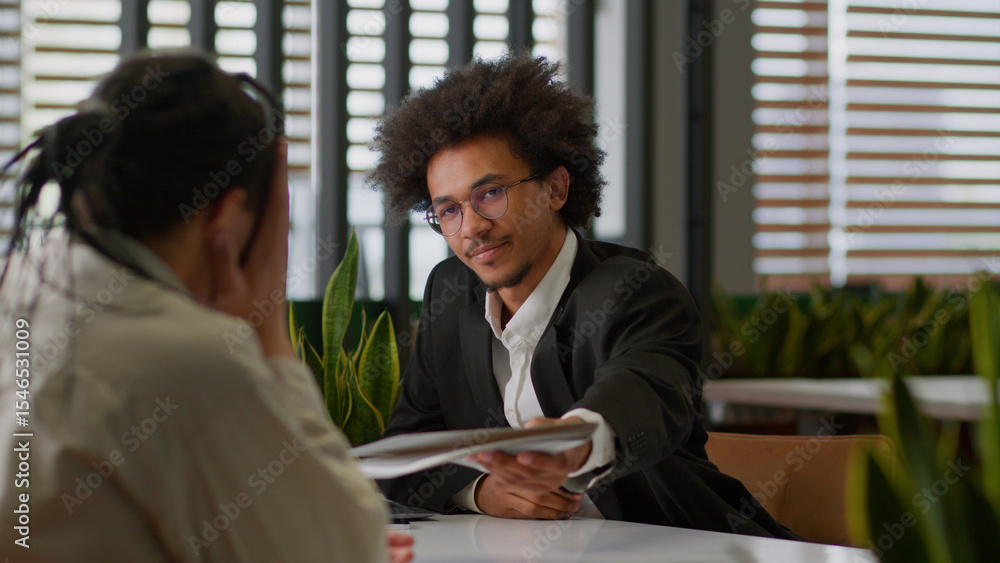 Tableau sur toile Two businessmen in business office African American leader insurance bank agent