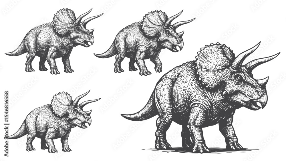 Tableau sur toile Engraved Triceratops dinosaur vintage horned herbivore creature detailed bold cl