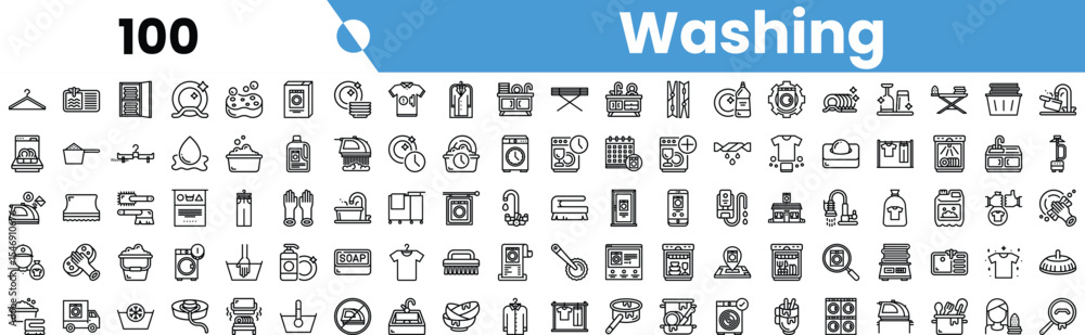 Tableau sur toile A collection of monochrome washing icons representing cleaning tools, laundry procedures, and various household items for laundry tasks