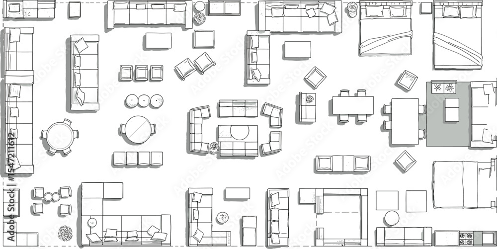 Tableau sur toile Top view furniture collection, modern interior layout elements, sofas, beds, tab