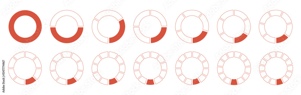 Tableau sur toile Circles divided diagrams 1, 2, 3, 10, 7, 8, 9, 10, 11, 12, 13, 14 equal parts