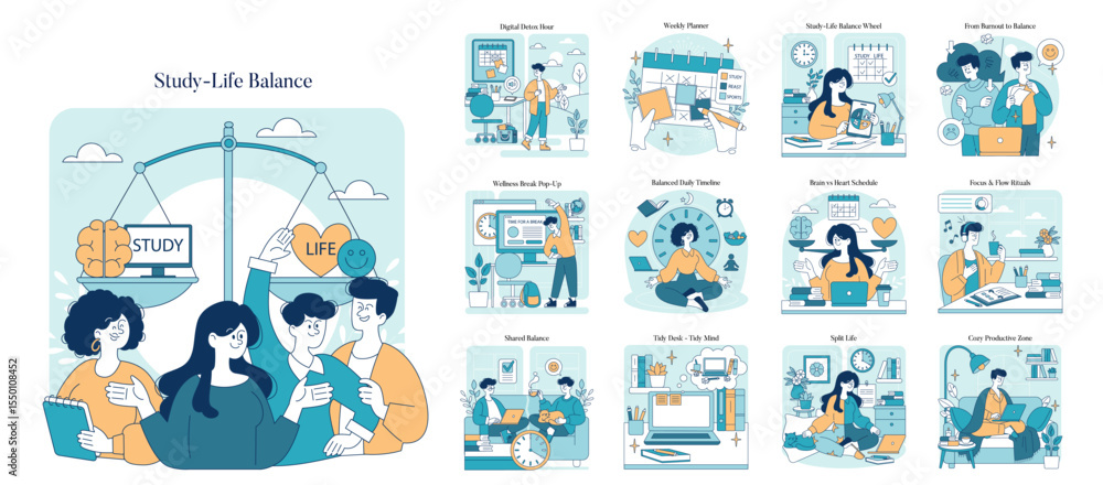 Tableau sur toile Study-Life Balance Concepts Illustrated with Characters