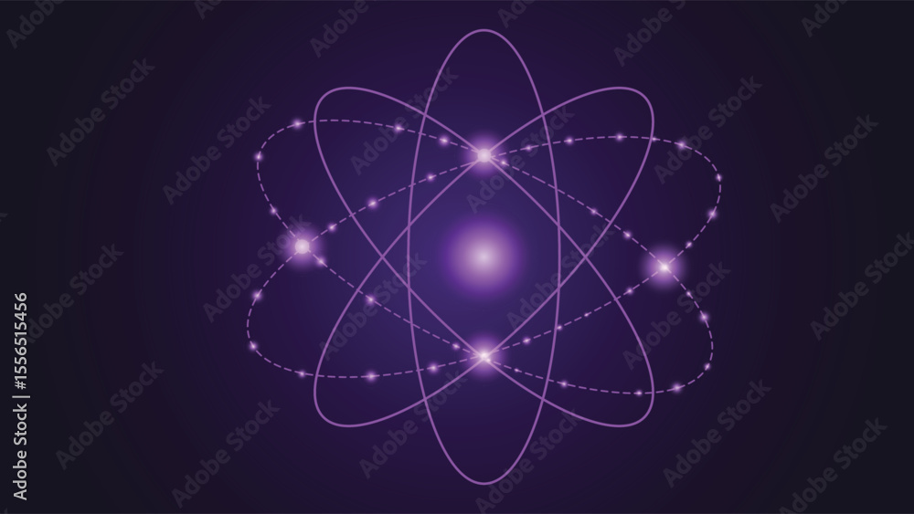 Tableau sur toile Modern abstract purple background featuring a glowing atom with dynamic electron orbits, perfect for science, technology, physics, energy, and futuristic themed creative projects