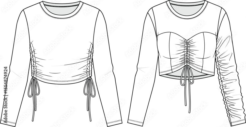 Tableau sur toile Trendy ruched crop top with drawstring, bustier and long sleeve design, fashion