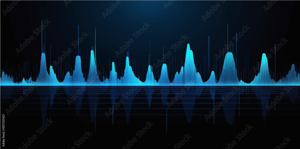 Tableau sur toile Blue sound wave equalizer illustration with digital frequency graph design