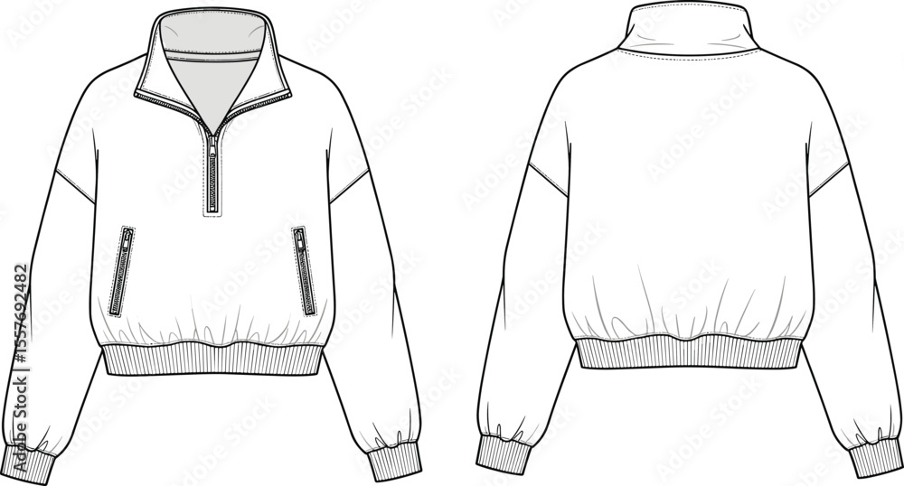Tableau sur toile Half zip pullover sweatshirt flat sketch, front and back view, fashion cad drawi