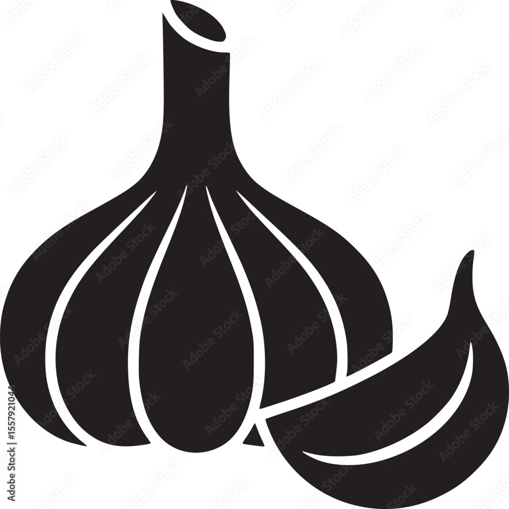 Tableau sur toile Illustration of a garlic bulb and a single clove in black silhouette on a white