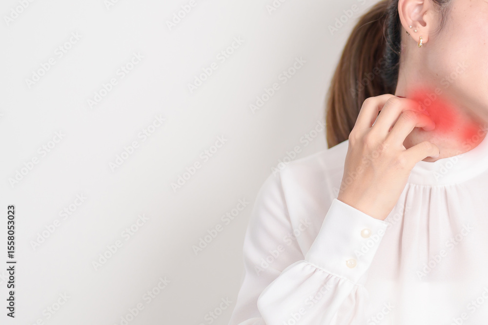 Tableau sur toile Business woman itching Neck and body scratching for Skin Allergy from insect bite and food dermatitis
