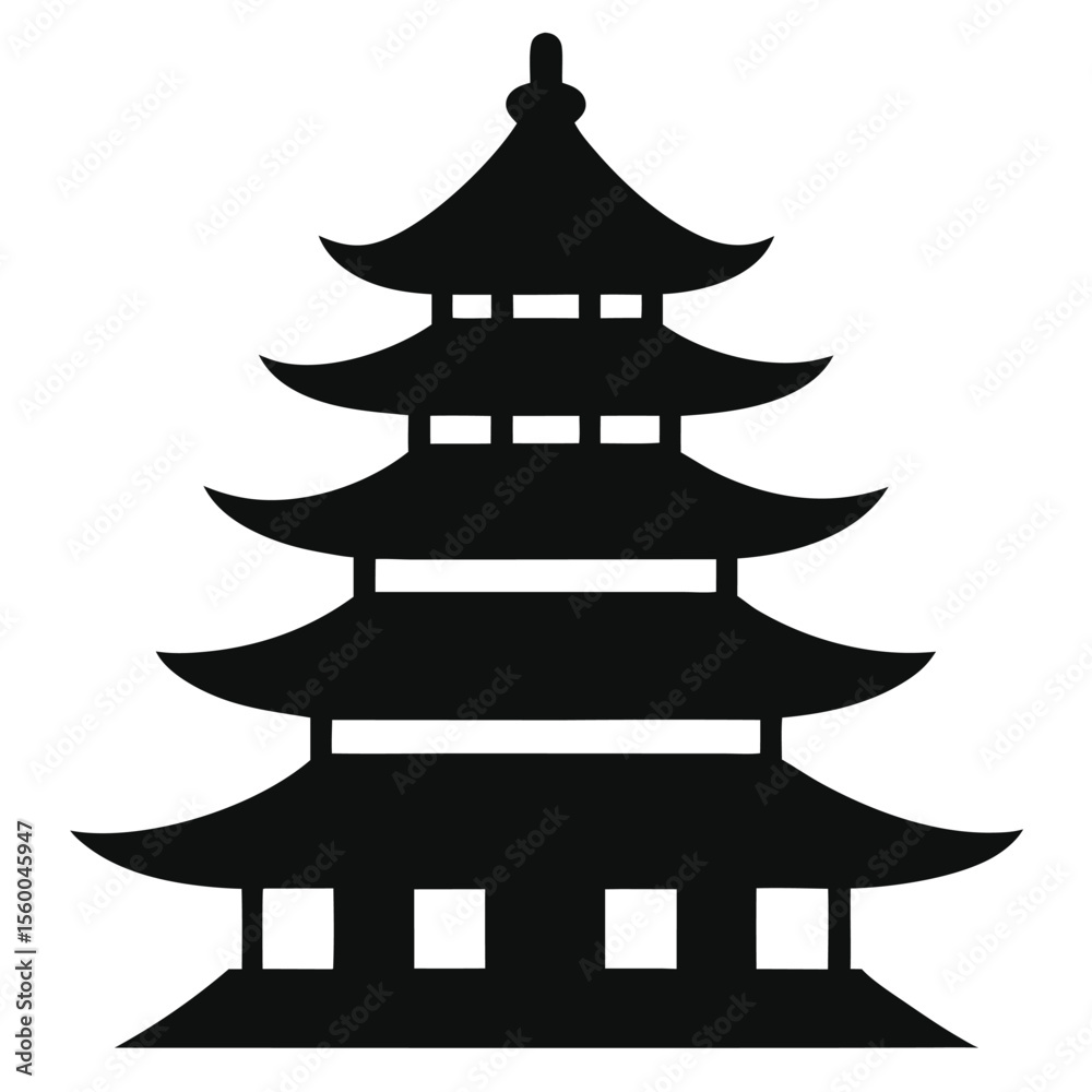 Tableau sur toile Elegant Black and White Illustration of a Five-Story Pagoda Asian Architecture