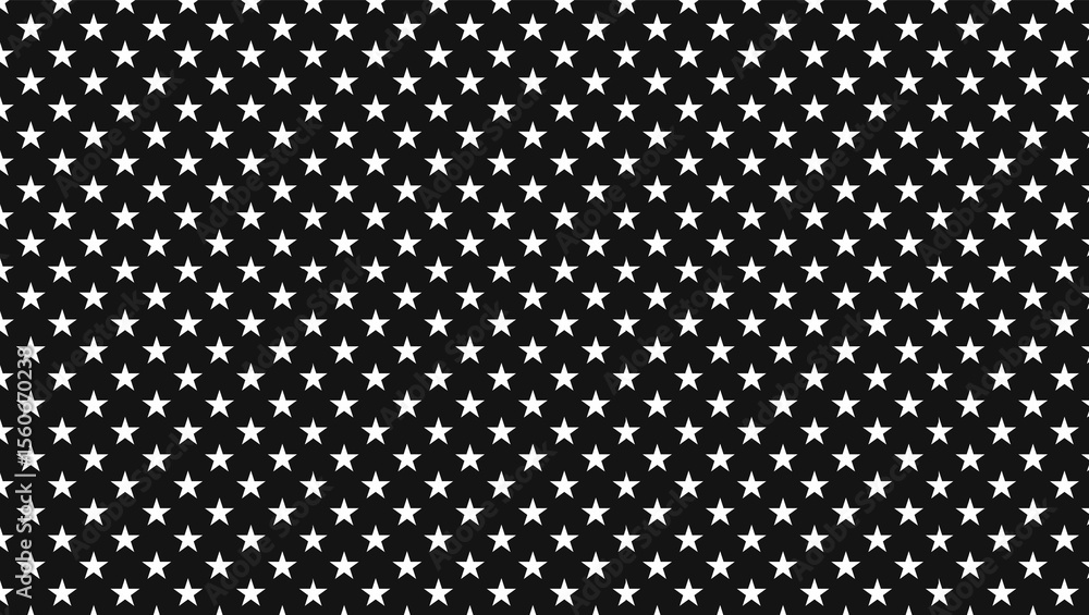 Tableau sur toile Repeating pattern of white five pointed stars on a black background creating a d