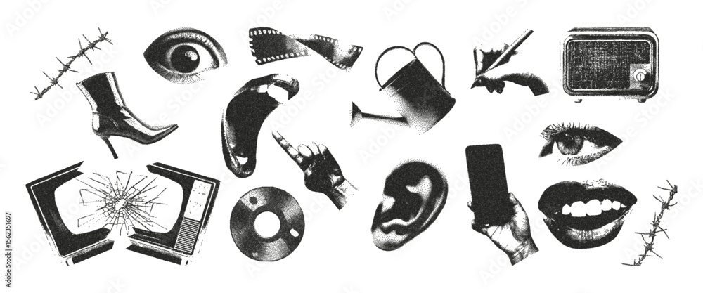 Tableau sur toile Trendy fake news halftone stipple elements with photocopy effect