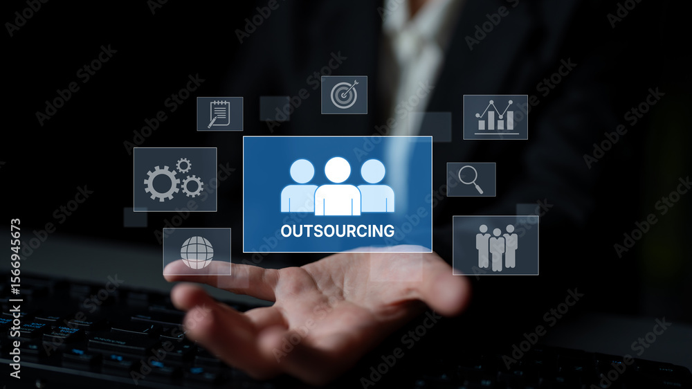 Tableau sur toile Outsourcing concept showing collaboration, delegation, global workforce, product