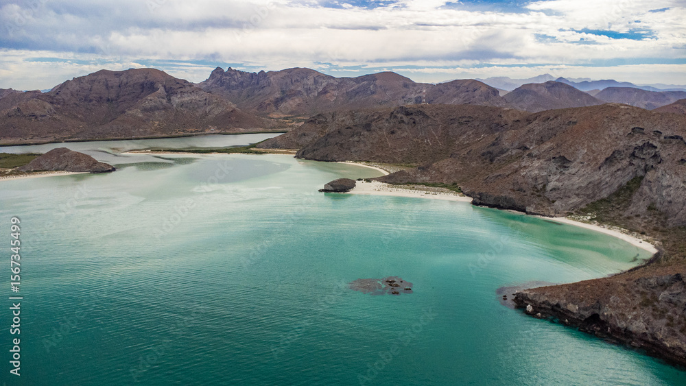 Tableau sur toile Balandra Beach from Above: Aerial Drone View of Turquoise Waters in Baja Califor