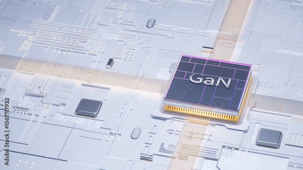 Tableau sur toile Digital art showcasing futuristic GaN semiconductor chip integrated with microel