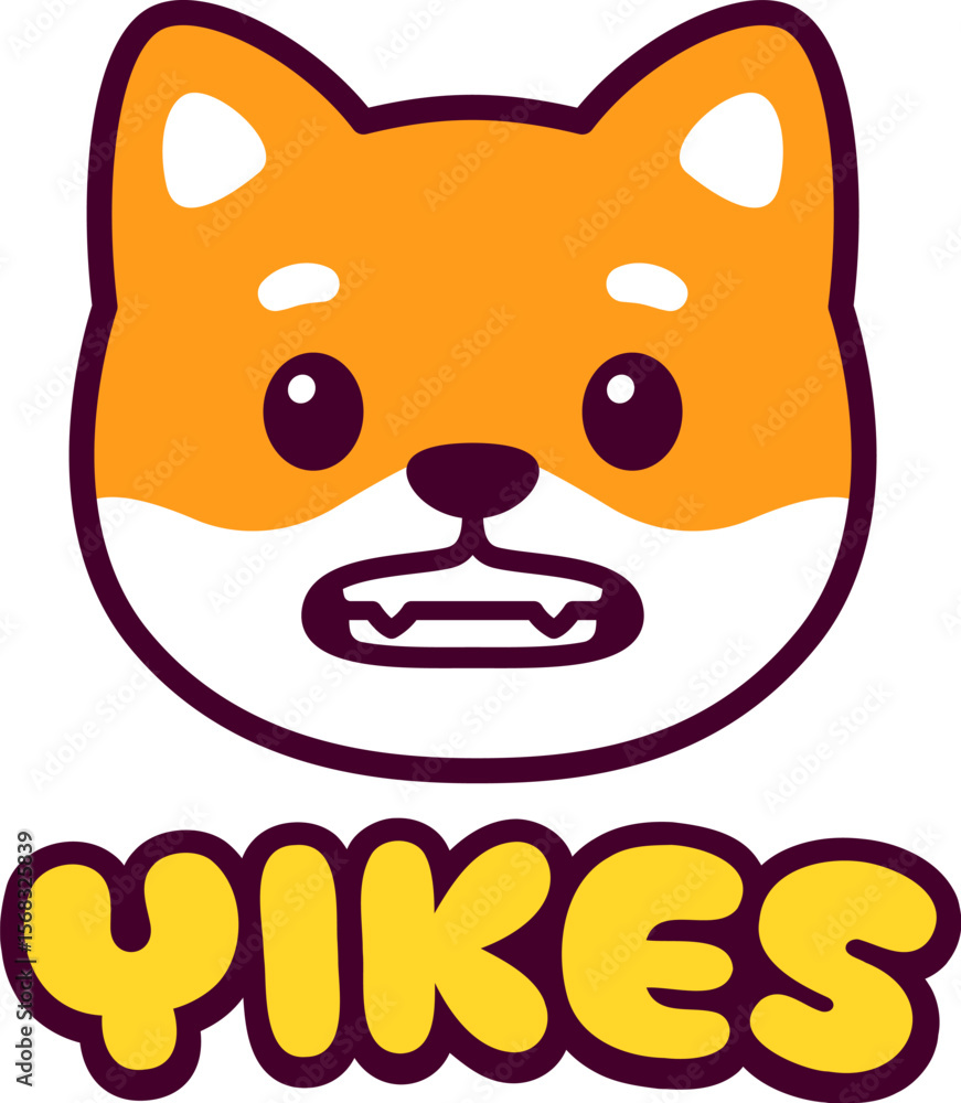Tableau sur toile Cute cartoon grimacing Shiba Inu face drawing with text bubble Yikes
