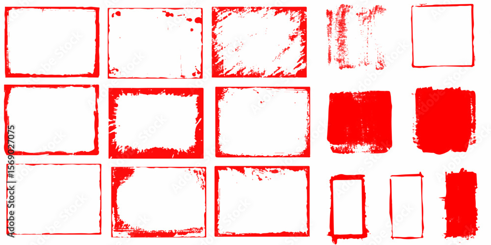 Tableau sur toile set of red brush painted ink stamp frames with place for your design element